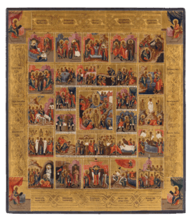 Op de pagina Ikonen vindt u een deel van onze collectie Russische en Griekse ikonen, waaronder ikonen van de Moeder Gods (Maria), Feestdagen en heiligen. Alle door ons aangeboden ikonen zijn antiek, dat wil zeggen dat ze dateren uit een periode van de 15e tot begin 20e eeuw. Wilt u meer weten over een ikoon, bijvoorbeeld de prijs? Registreert u zich dan hier.